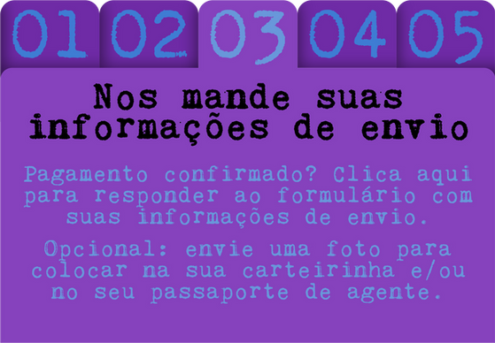 A missão que a agente deve realizar vai escrita dentro do envelopinho azul anexado a pasta roxa.